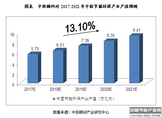 中投顾问对2017-2021年中国节能环保产业产值预测