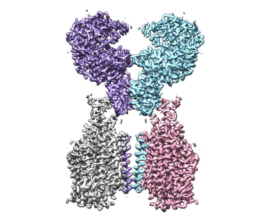 由于作为膜蛋白的ACE2本身很难在体外稳定获得,研究团队通过共同表达的方法获得了ACE2与肠道内的一种氨基酸转运蛋白B0AT1的复合物,并利用西湖大学的冷冻电镜平台解析了其三维结构。