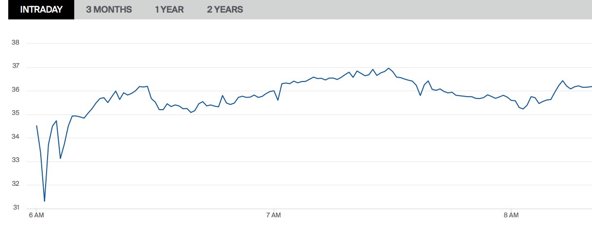 截至发稿,全球石油市场基准、5月交货的伦敦布伦特原油期货(Brent crude)下跌11.36美元,报每桶33.91美元,跌幅为25.09%。纽约商品交易所4月交货的轻质原油期货(WTI)价格下跌10.63美元,报每桶30.65美元,跌幅为25.75%。