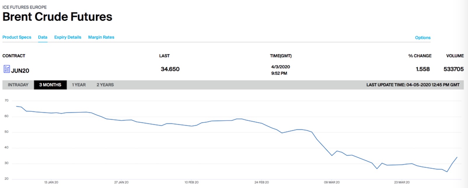 2014年,全球原油基准、伦敦ICE布伦特原油期货从每桶60美元到跌破30美元,耗时一年出头。2020年一季度,布伦特油价从每桶60美元到跌破30美元只用了50多天。3月上旬沙特阿拉伯与俄罗斯的深化减产谈判破裂后,叠加新冠疫情全球大流向,国际油价在3月份暴跌。更糟糕的是,如果产油国再不减产,以当前供过于求的程度,地球上的库容快要装不下油了。负油价?不是危言耸听。
