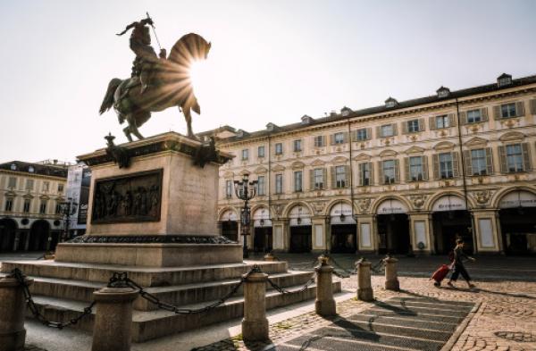 4月4日,在意大利都灵,一名女子走过空旷的街道。新华社 图