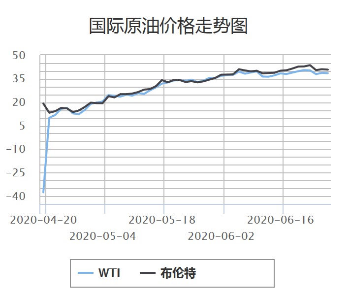 受上述利好消息影响,国际原油期货价格前期震荡走高,但后期略有回落。截至本周五(6月26日)收盘,纽约商品交易所8月交货的轻质原油期货价格跌0.59%,收于每桶38.49美元。8月交货的伦敦布伦特原油期货价格跌0.07%,收于每桶41.02美元。