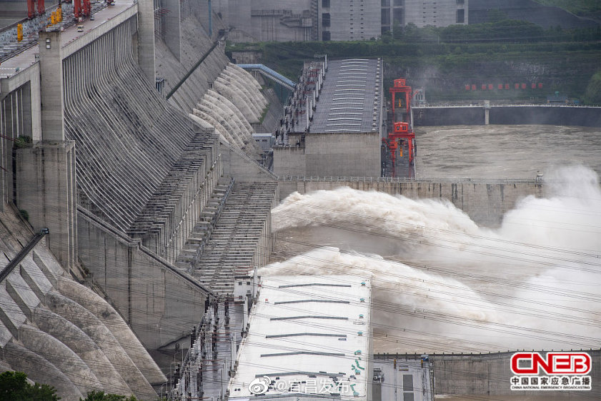 6月29日,湖北宜昌,长江三峡枢纽开启泄洪深孔泄洪。 国家应急广播网 图