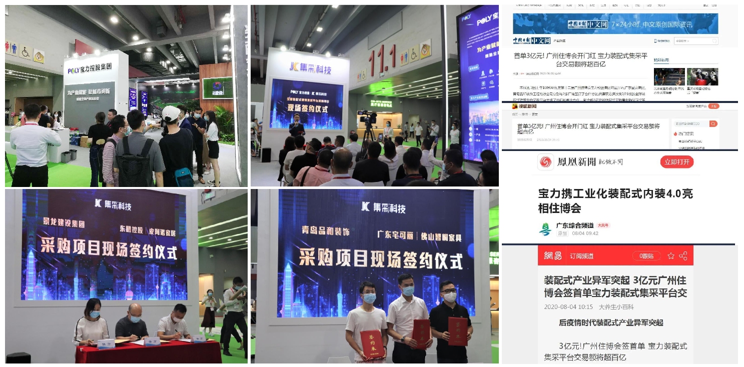 2、展会开幕不到两个小时,在宝力控股集团展厅内,广东景龙集团、青岛品和装饰工程有限公司分别与两家厂商正式签订了装配式采购意向协议,供需双方通过集彩科技的全球装配式建筑集中采购平台完成了他们的采购合作,成为本届住博会首单合作意向,成交金额达 3 亿元!