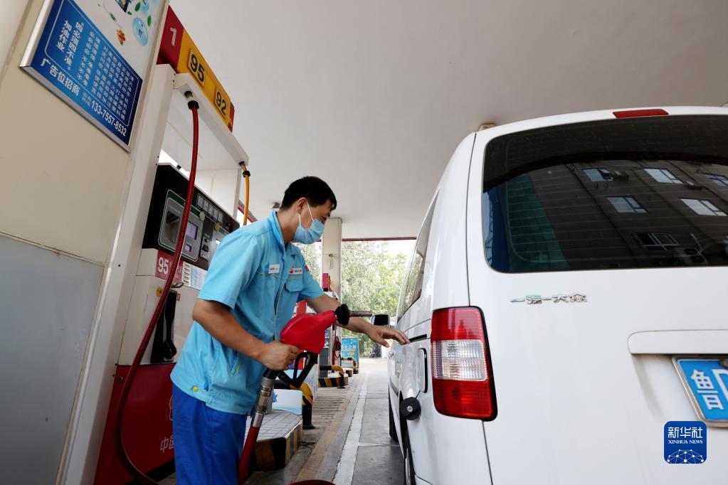 9月6日,在江苏省连云港市一加油站,工作人员给汽车加油。新华社发(王春 摄)