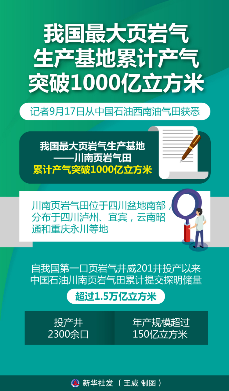 新华社成都9月17日电(记者萧永航、王悦阳)记者17日从中国石油西南油气田获悉,我国最大页岩气生产基地——川南页岩气田累计产气突破1000亿立方米。
