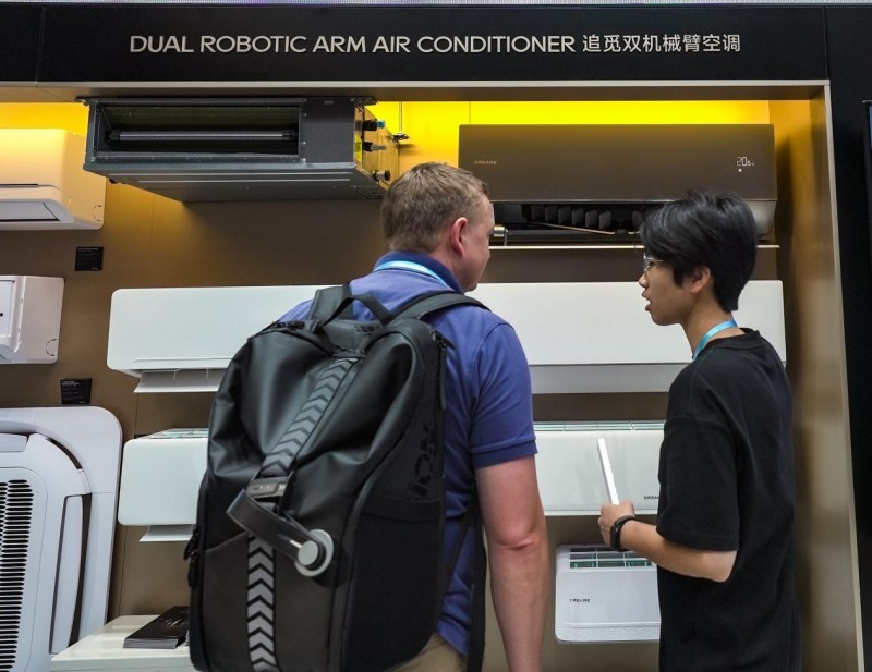 报道指出,追觅双机械臂空调创新性将工业机器人领域的机械臂技术,前瞻性应用于日常生活场景中。其不仅实现了广角送风、精准分区控风和智能风感调节,还集成了强大的环境净化能力,引发现场阵阵惊叹。