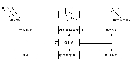 中矿电机节电器通过内置的工业计算机实时检测电动机的负荷情况,分析负载大小和变化趋势,计算出供给电动机最佳电压、电流,通过快速控制可控硅的导通角的大小,控制电机的供电电压,使电机的输出功率与负荷转矩精确匹配。使电机可在空载和大多数负荷情况下保持较高恒定的电机效率。 其控制原理图如下: